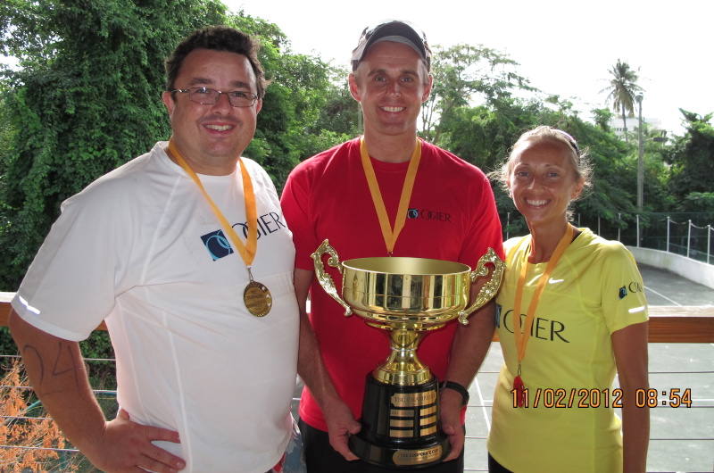 In the fourth annual TSC Tri and second battle for the Corporate Cup introduced last year, Ogier beat Appleby by 57 seconds to wrestle the Cup from Deloitte who fielded three teams in a bid to keep it in their boardroom.   Ogier, with Simon Schilder swimming, Gareth “I’m just off the couch” Thomas cycling, and Clare-Louise Whiley running, won with a time of 1 hour 9 minutes and 12 seconds.  Deloitte 1 was third.